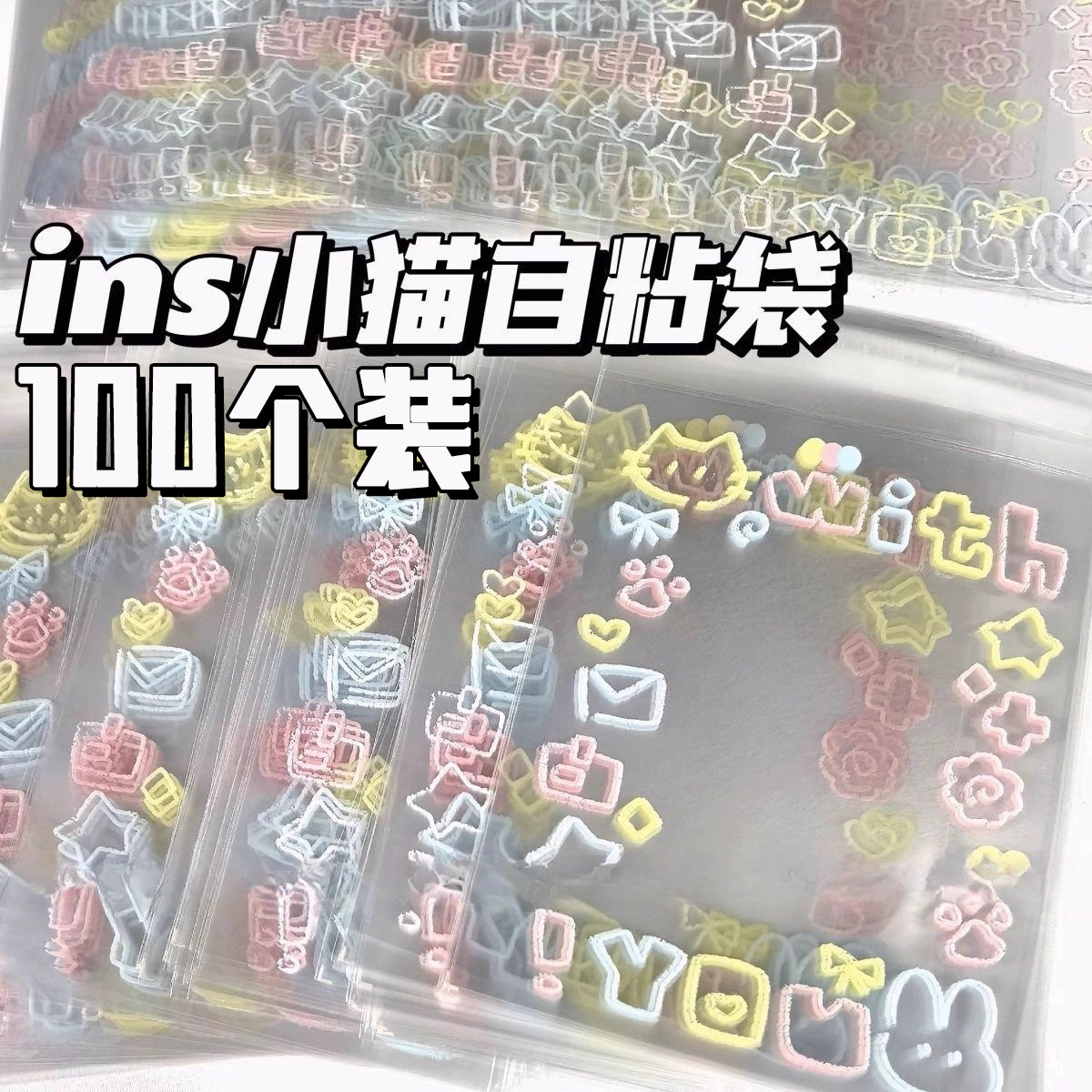Ins Graffiti Kitten Ziplock Bag Idol Card Cute Packaging Bag Jewelry Earrings Storage Gift Packaging Bag