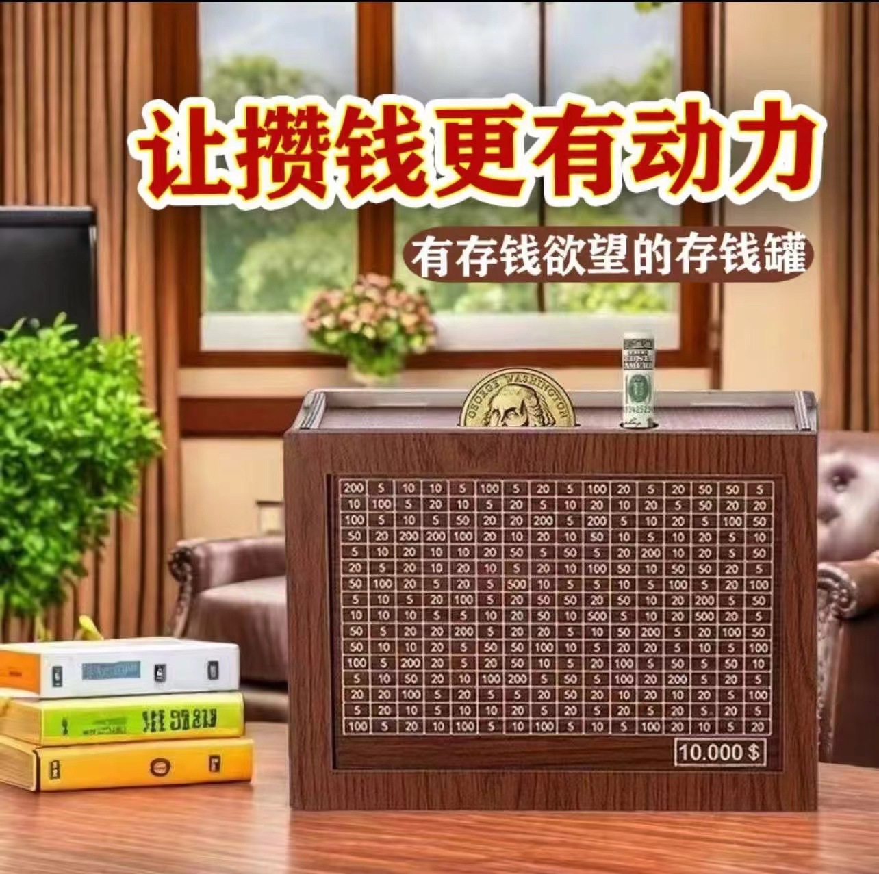 Tiktok Domestic and Cross-Border Trending Wooden Piggy Bank for Euros and Dollars, Coin Savings Box, Wooden Craft