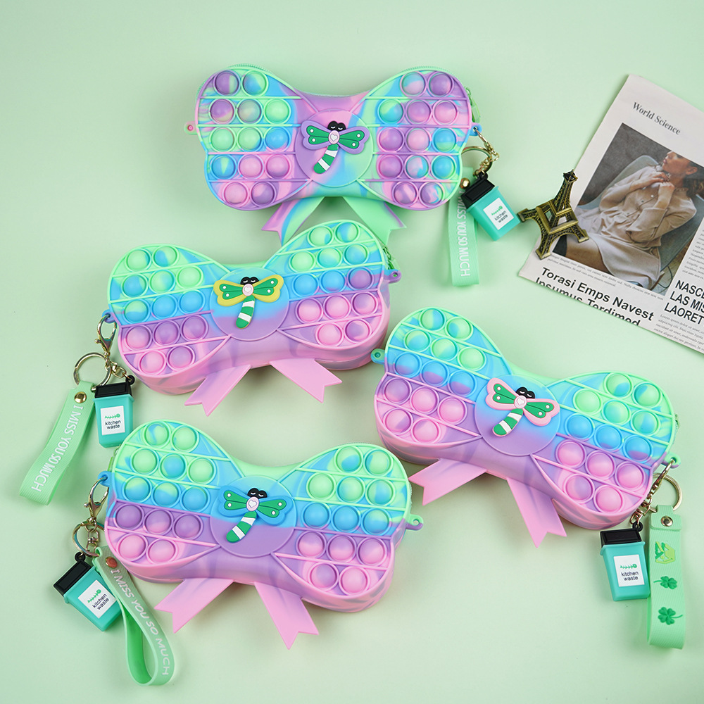 New Cute Bow Silicone Pencil Bag Stationery Storage Bag Bag Bow Shoulderless Decompression Bag Factory