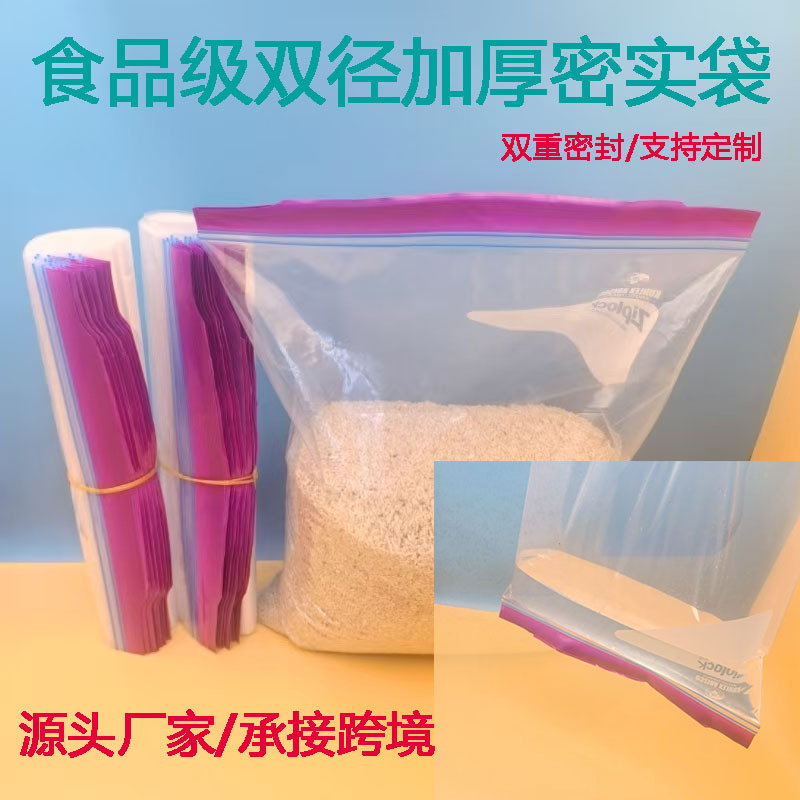 Pe Double Diameter Ziplock Bag Thickeneded Food Sealed Fresh-Keeping Zipper Bag Opp Self-Adhesive Storage Plastic Packaging Bag