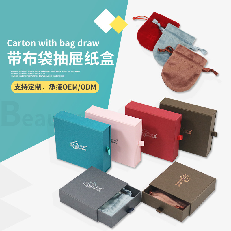 Casual Jewelry Paper Box with Cloth Bag, Bracelet Bracelet Pendant Box, Environmentally Friendly Pull-Out Jewelry Packaging Box Customization