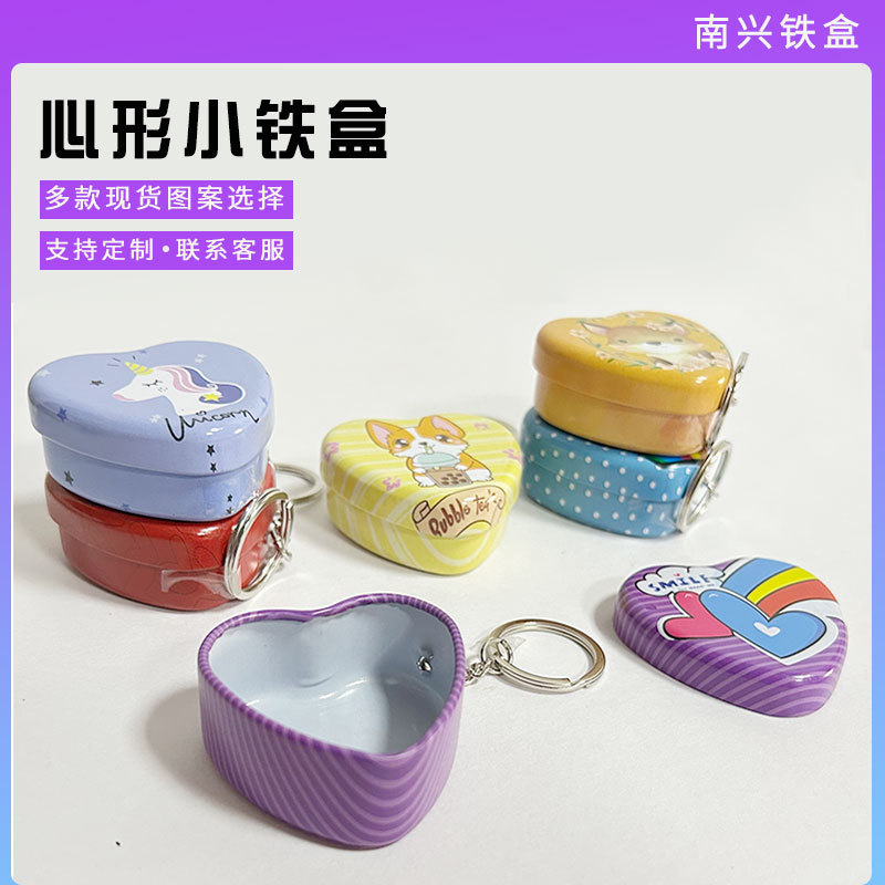 Storage Box Keychain Portable Mini Cute with Buckle Small Portable USB Flash Drive Earrings Jewelry Stickers Small Iron Box