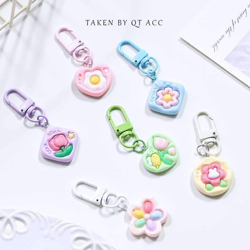 Cute geometric flower small pendant jewelry keychain student bag pen bag hanging ornaments girlfriends gift accessories wholesale