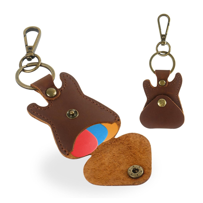 Guitar pick stand, leather guitar pick case with keychain and hook Folk bakelite bass pick