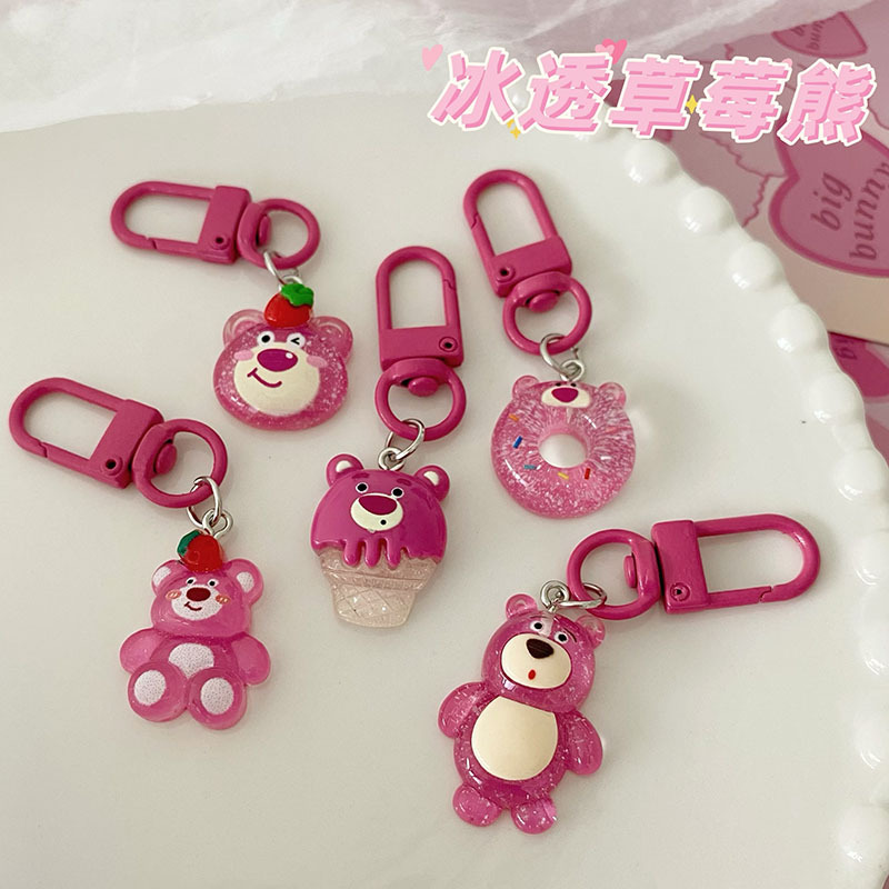 Cute Cartoon Strawberry Bear Keychain Pink Sweet Girl Heart Student Schoolbag Pencil Bag Pendant Girlfriend Gift