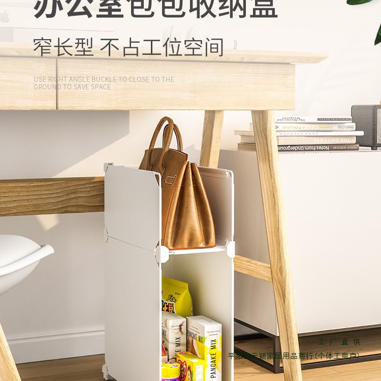 Ultra-Narrow Bag Storage Box Office Double-Layer Briefcase Storage Rack with Wheels Debris Space-Saving Storage Box