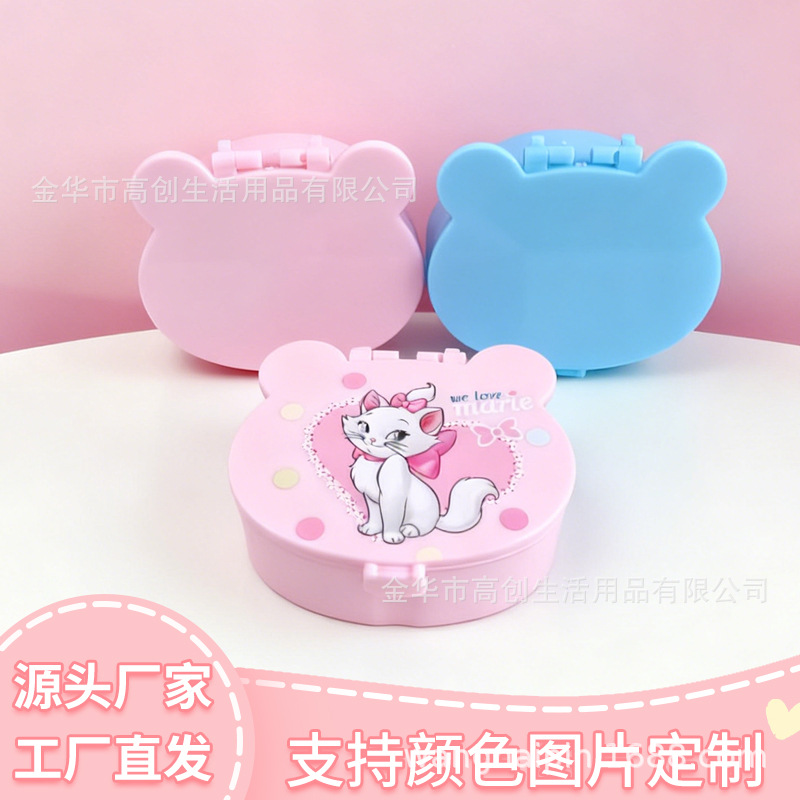 Cute Pink Bear Type Cartoon Plastic Storage Box Desktop Makeup Mirror Storage Box Two-In-One Storage Box Wholesale