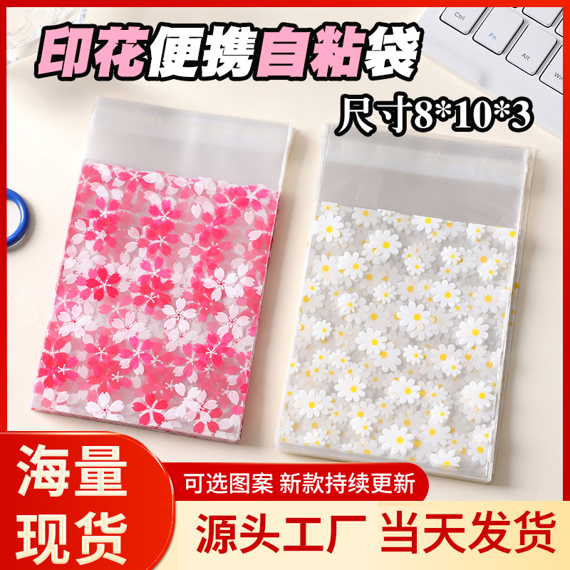 opp flower printed packaging bag self-adhesive bag small card raccoon packing bag transparent sub-packing self-sealing bag