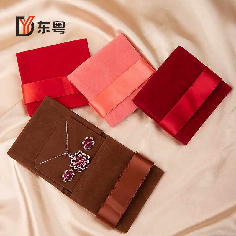 High-grade flannel folding ribbon jewelry flannel bag earrings necklace storage bag ring bracelet gift suit bag