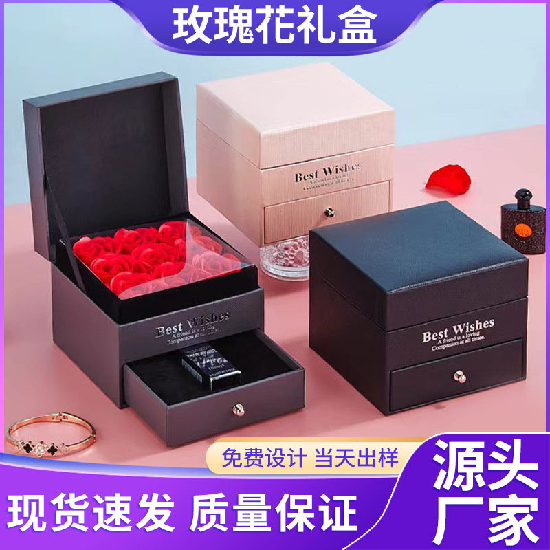 Spot Cardboard Souvenir Rose Flower Empty Box Double-Layer Drawer Box Valentine's Day Birthday Gift Packaging Book Box