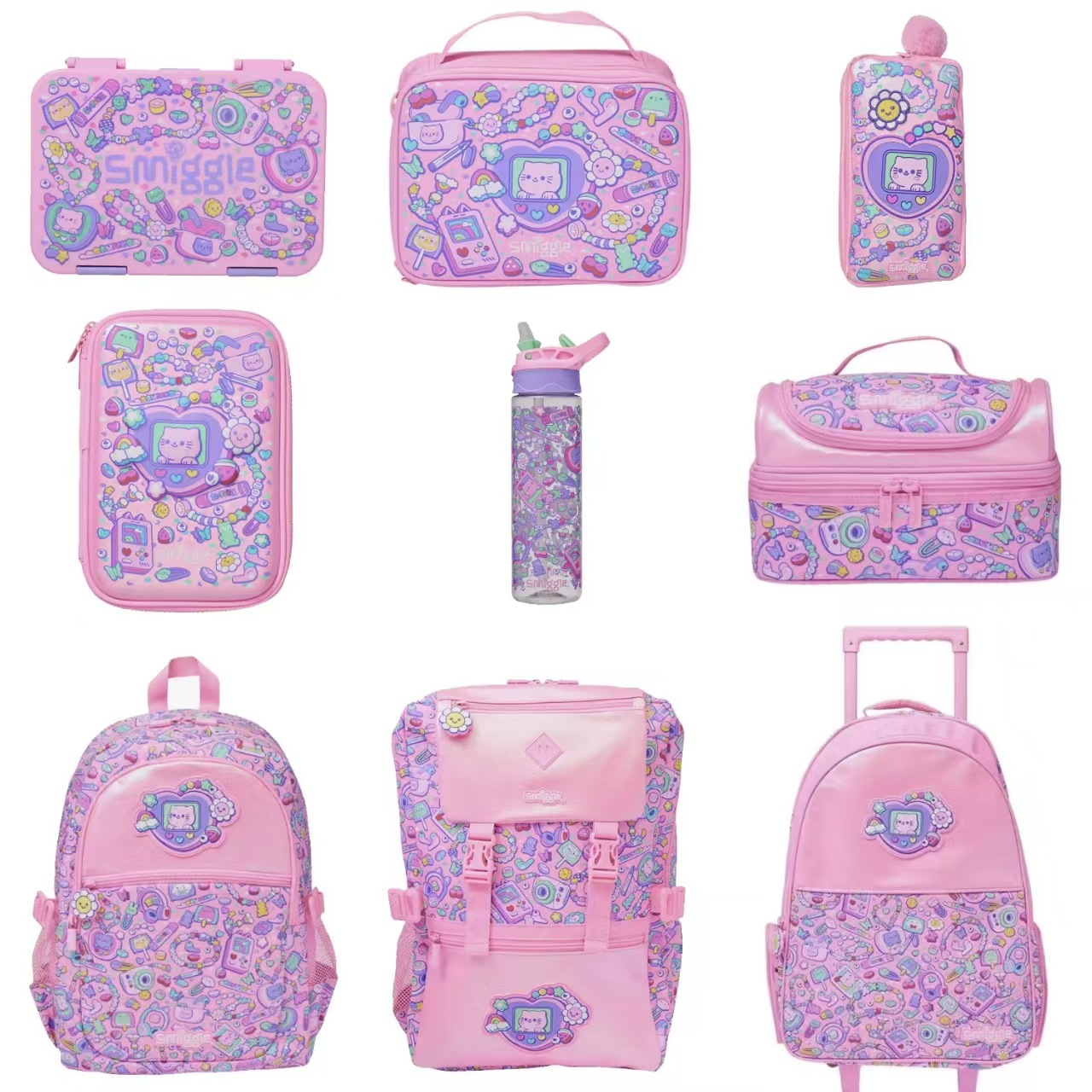 Australian Smiggle Schoolbag Primary School Student Backpack Kidsren's Outdoor Leisure Bag Pink Necklace Cat Suit Series