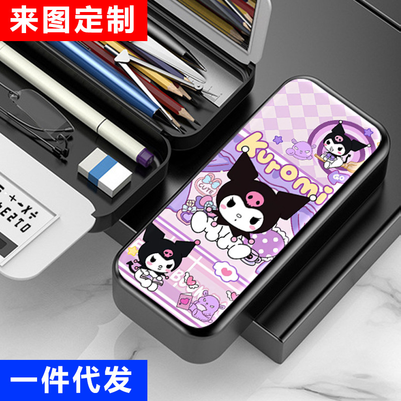 Cute Kuromi Internet Celebrity Multifunctional Student Stationery Box Glasses Storage Box Pencil Case Pencil Case Large Capacity Wholesale