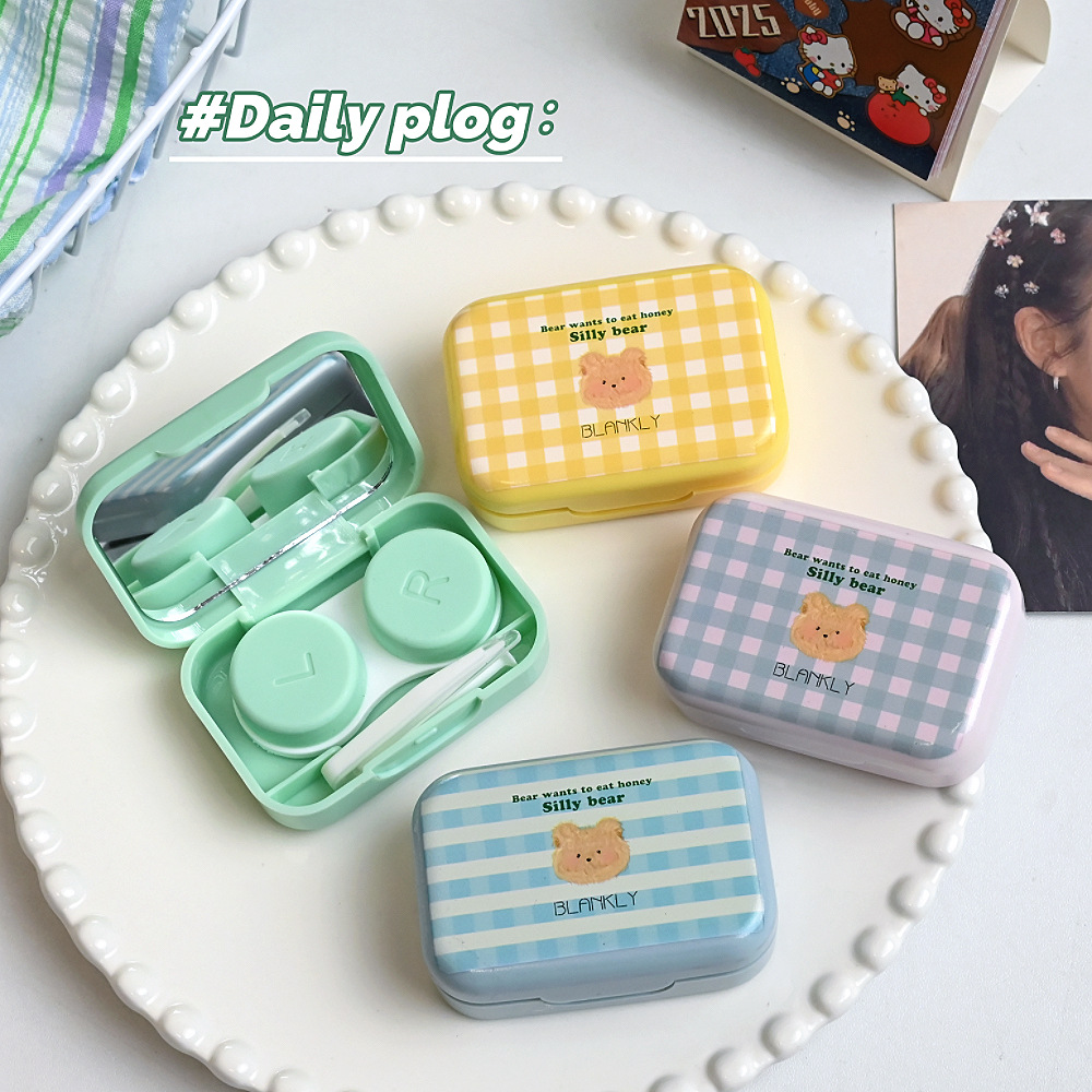 Cartoon Ins Bear Contact Lens Case, Contact Lens Case, Cute Portable Companion Care Box, Storage Box with Mirror