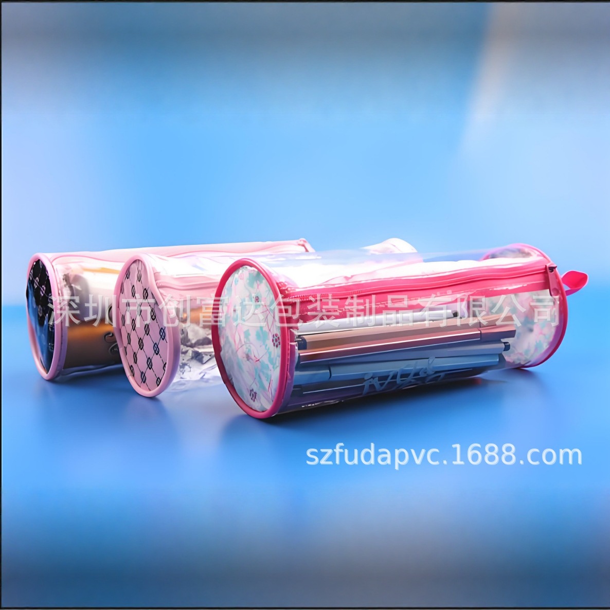 Shenzhen Factory Supplies Outdoor Pvc Swimming Goggles Stereo Zipper Storage Bag Barrel-Shaped Pencil Case Jewelry Plastic Bag