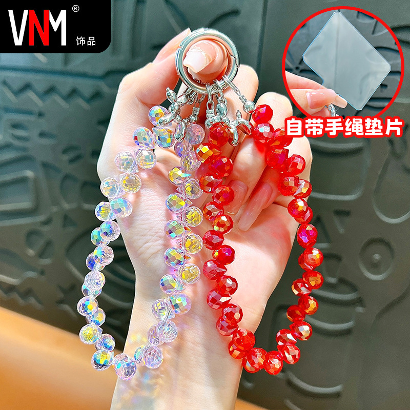 High Yan Value Ins Handmade Beaded Bracelet Crystal Short Pendant Women's Bag Key Headset Mobile Phone Pendant MN06