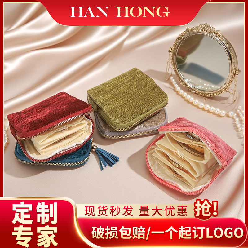 Exquisite Tassel Zipper Jewelry Bag Velvet Jewelry Storage Bag Ring Bracelet Velvet Bag Portable Jewelry Storage Bag