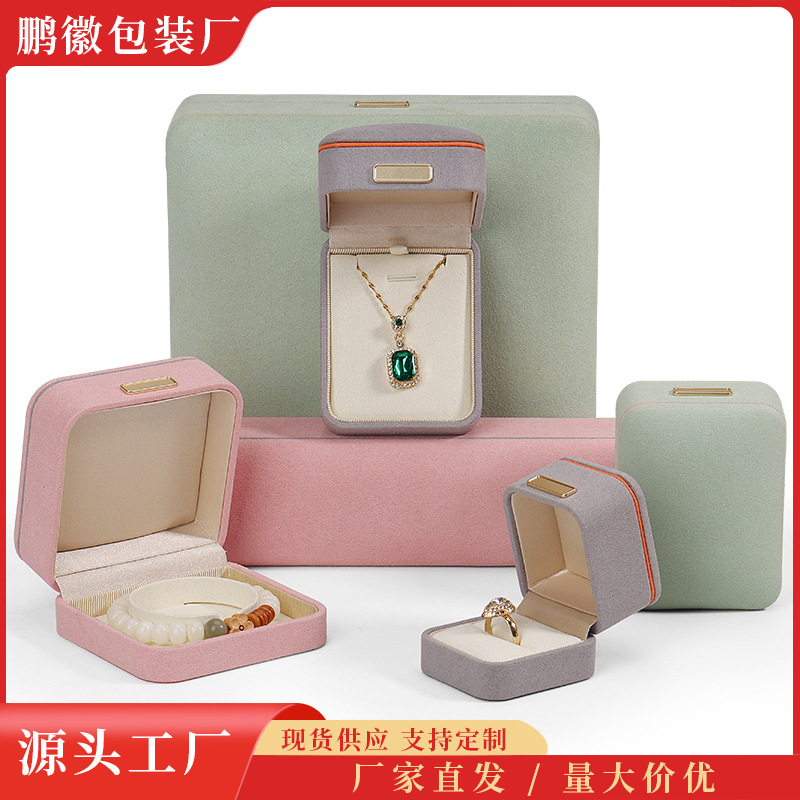 Cross-Border Rounded Corner Microfiber Jewelry Box Wholesale Flip Jewelry Gift Box Jade Pendant Bracelet Packaging Box Jewelry Box
