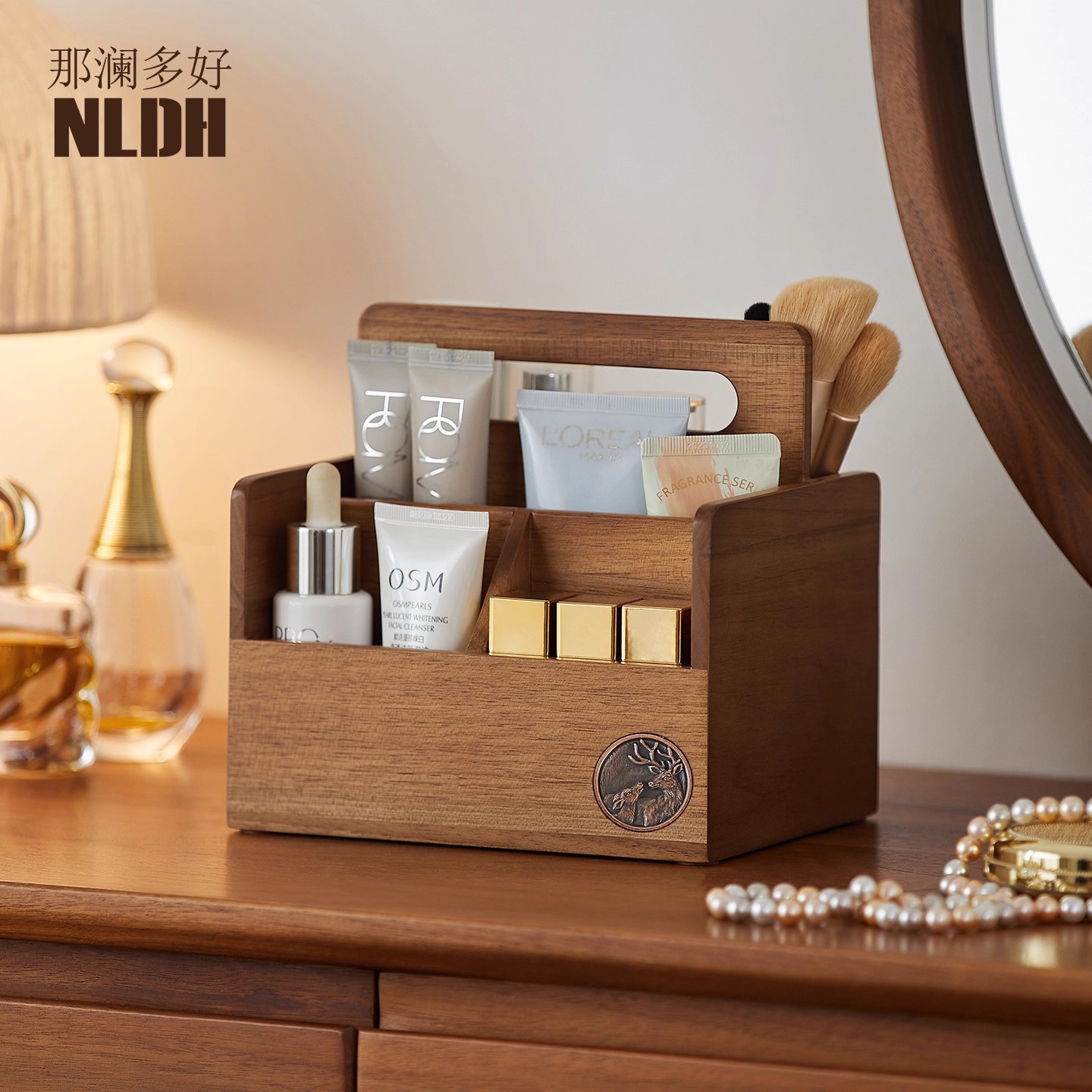 Dressing Table Cosmetics Desktop Storage Box Desk Stationery Compartment Organizer Solid Wood High-End Remote Control Storage