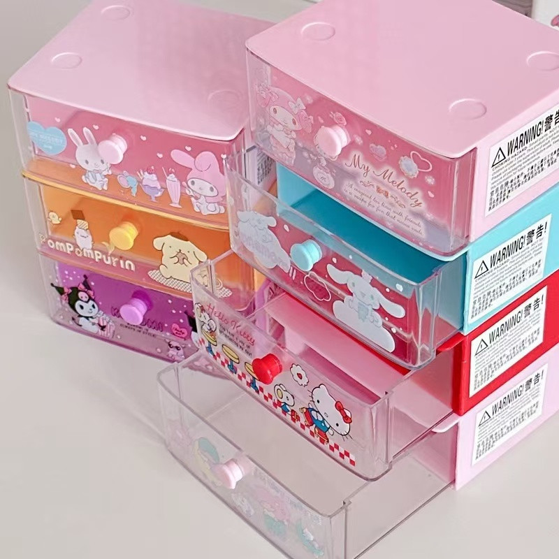 Cute Desktop Mini Melody Big-Eared Dog Kuromi Stacked Drawer Storage Box Cute Tape Jewelry Storage