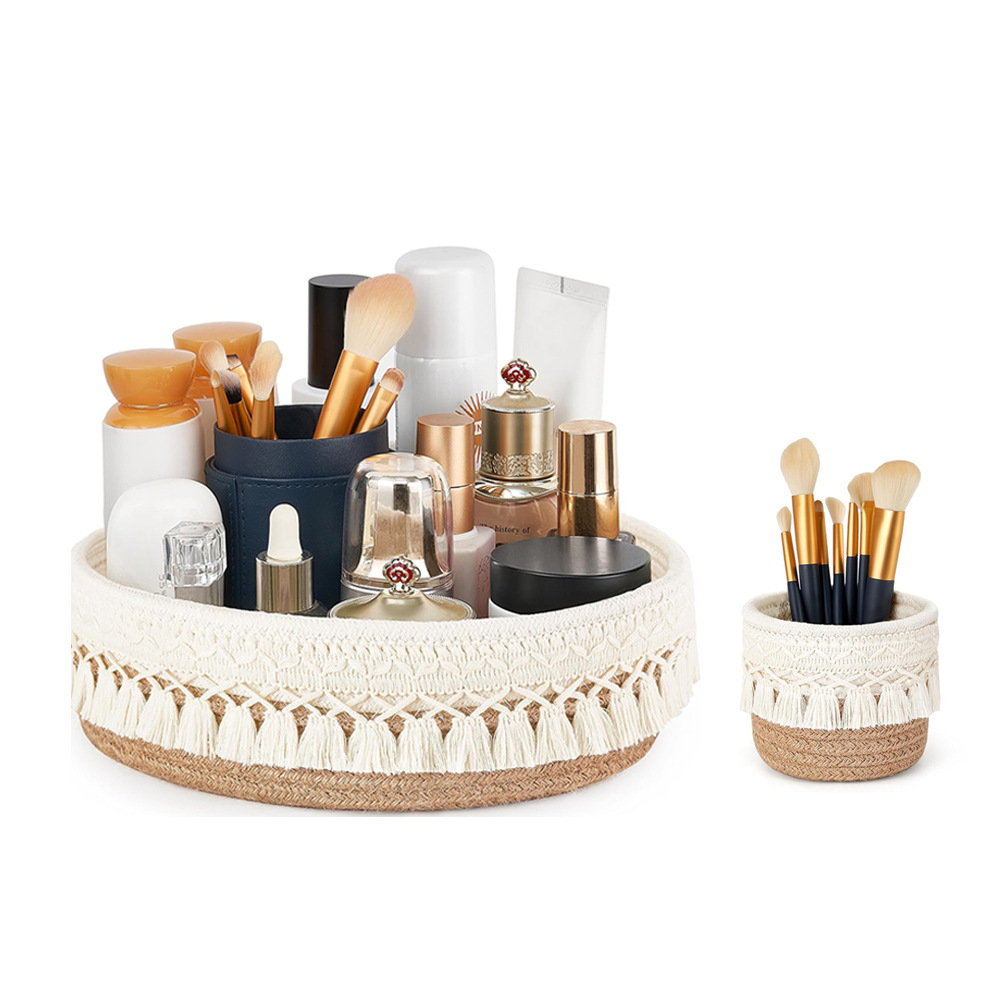 Cross-Border Hot Selling Small Storage Basket with Tassels Storage Basket Cosmetics Storage Basket Storage Box Cute Basket