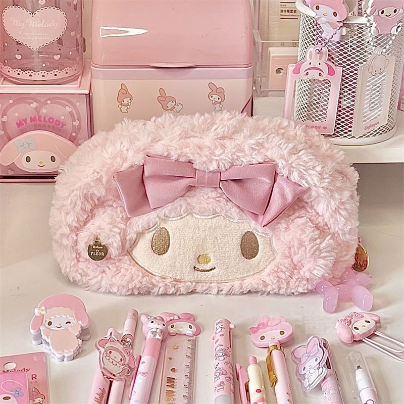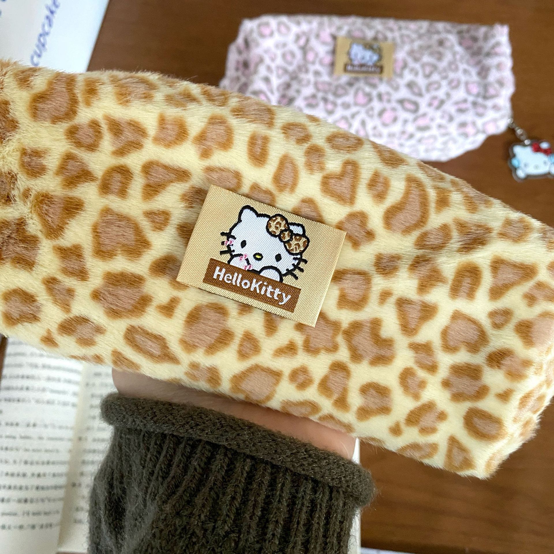 Cute Plush Kt Cat Pencil Case New Leopard Print Plush Stationery Box Large Capacity Stationery Bag Junior High School Stationery