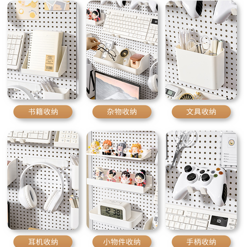 Round Hole Perforated Board Accessories 16 Hole Spacing Hook Pendant Parts Box Set Study Storage Rack Wall Shelf Tray