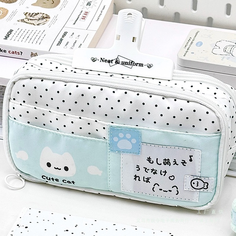 Cute Polka Dot Kitten Pencil Case with High Appearance Value Ins Style Niche Non-Colliding Student Girl Stationery Box 2025 New Style