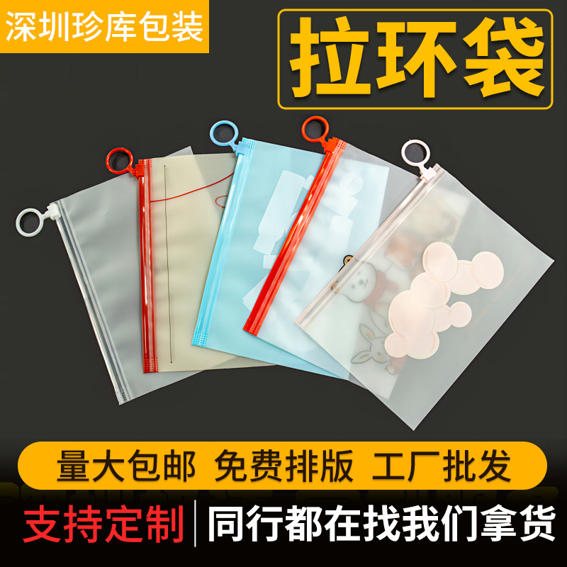 Spot Plastic Transparent Bag Packaging Bag Clothing Zipper Bag Socks Jewelry Accessories Storage Pull-Tab Bag Pencil Bag
