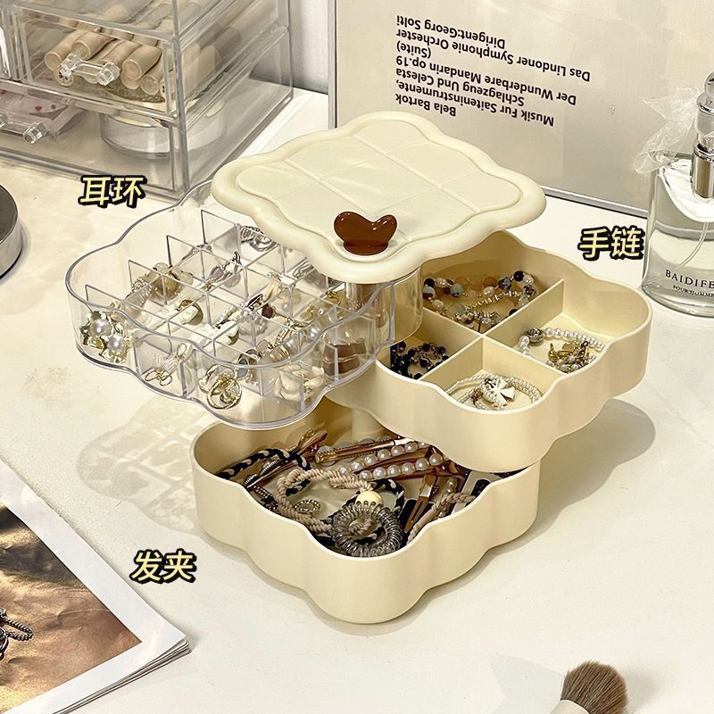 Rotating Jewelry Box, Multi-Layered Compartment, Large Capacity, Dust-Proof and Oxidation-Proof Ring, Necklace, Earrings, Earrings, Cute Storage Box