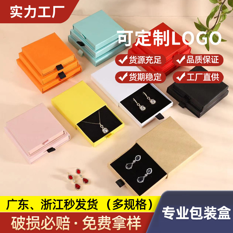Wholesale Drawer Box Printing Hot Stamping Logo Custom Red Pink Blue Jewelry Jewelry Packaging Box Paper Box Customization