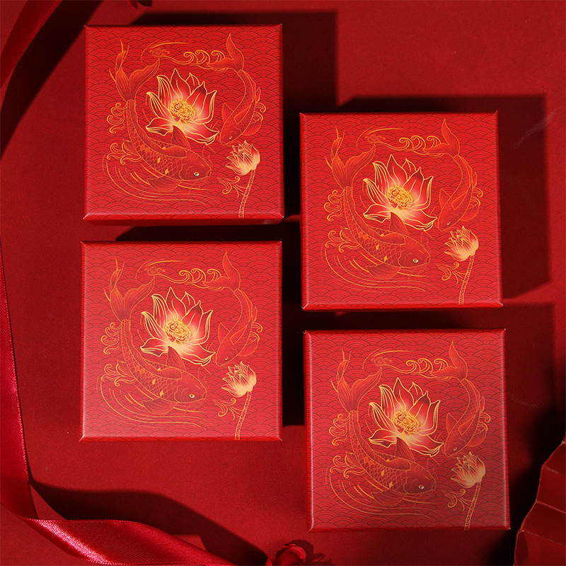 New Year Festive National Tide Koi Red Heaven and Earth Cover Hand Beaded Silver Bracelet Necklace Jewelry First Jewelry Packaging Box