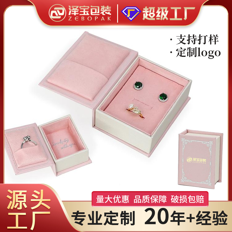 High-End Pink Book-Shaped Box Jewelry Box Flip Ring Box Pendant Packaging Box Jewelry Gift Box Empty Box Customization