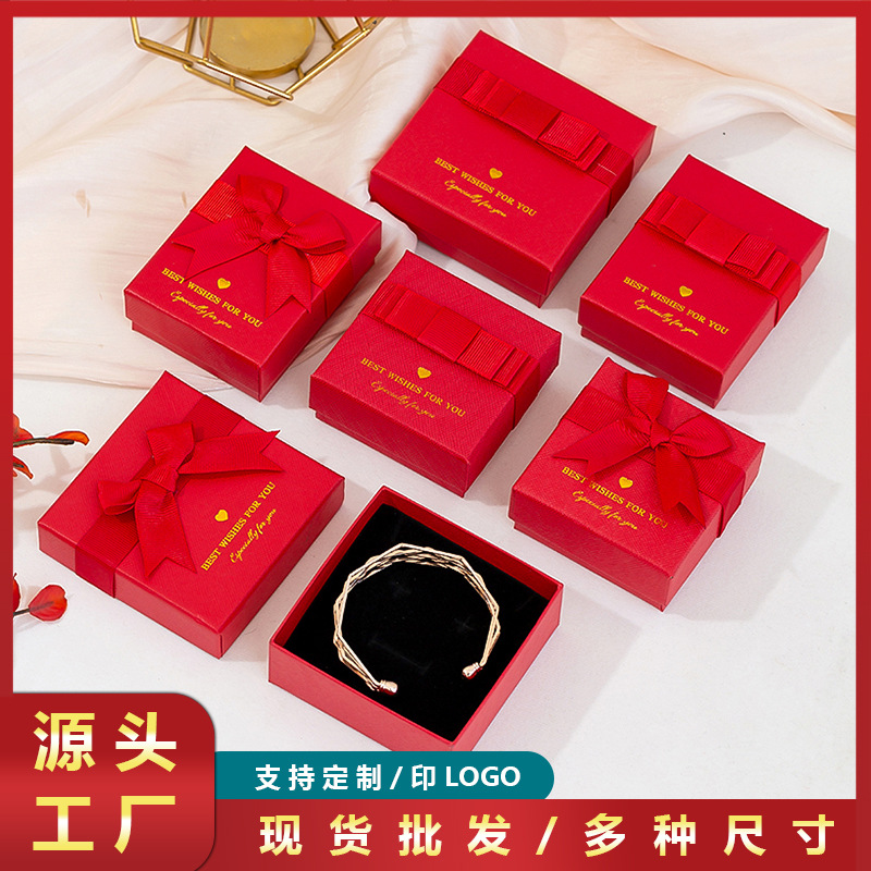 Red bow gift box ring earrings jewelry packaging box bracelet necklace jewelry box packaging box in stock wholesale