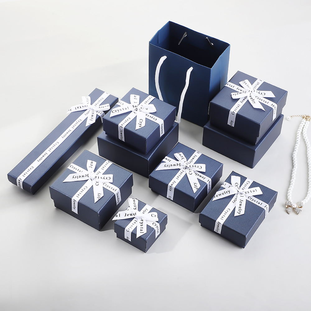 New English Letter Bow Jewelry Packaging Box Tiandi Cover Necklace Earrings Bracelet Holiday Gift Packaging Box