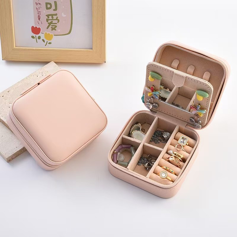 Cross-Border European and American Pu Velvet Jewelry Box Portable Jewelry Travel Storage Box Earrings Ring Necklace Jewelry Box