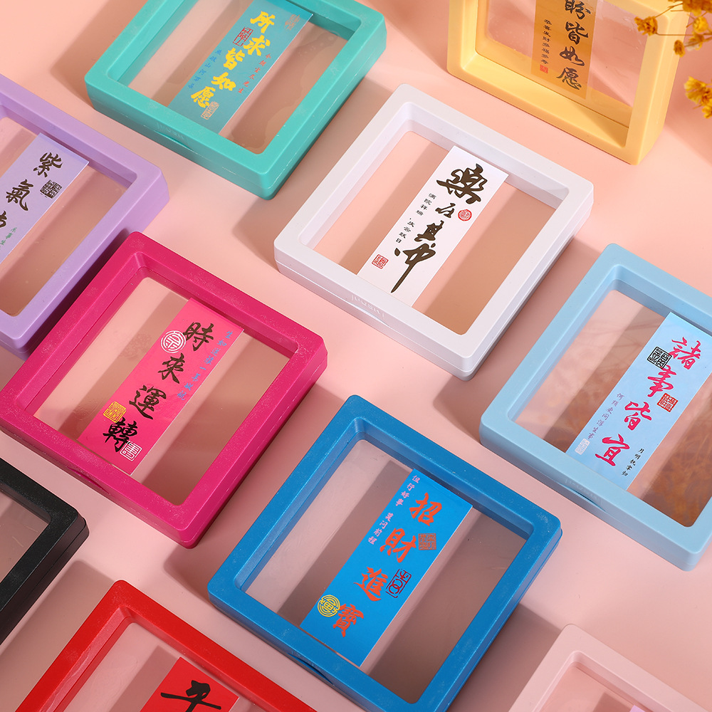 Temple with blessing words sticker suspension box national tide transparent jewelry display box scenic bracelet packaging box