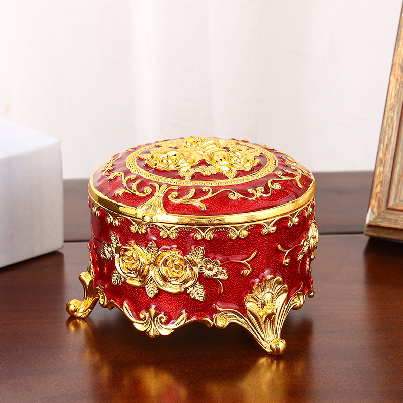 European-style Rose Jewelry Box High-end Creative Retro Personalized Home Enamel Dressing Table Metal Storage Box