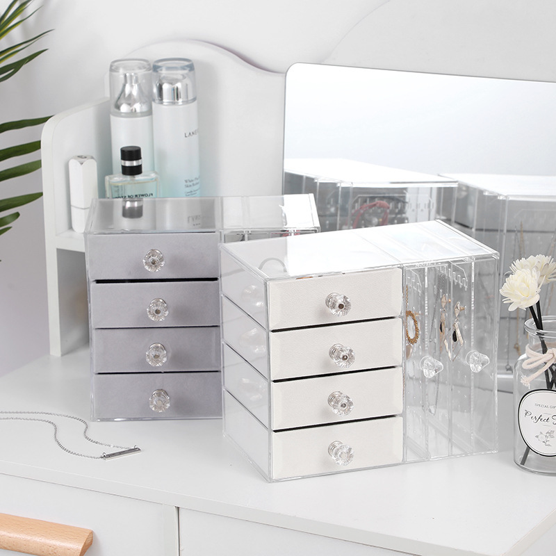Acrylic Transparent Drawer Type Jewelry Box Earrings Earrings Ring Four-layer Large Capacity Storage Box Desktop Display Rack