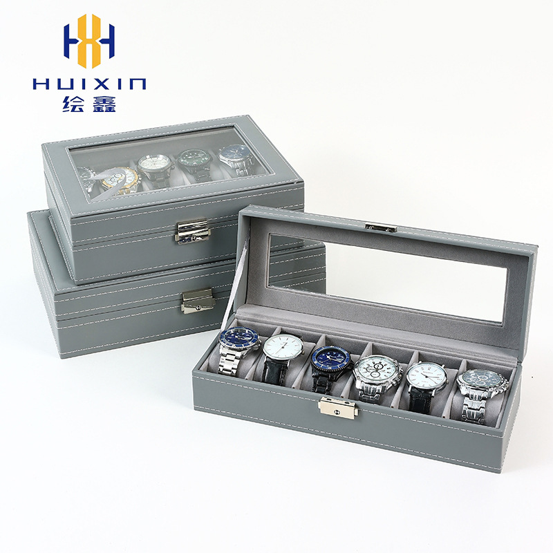 New watch box gift collection storage box leather watch box gray home jewelry box wholesale