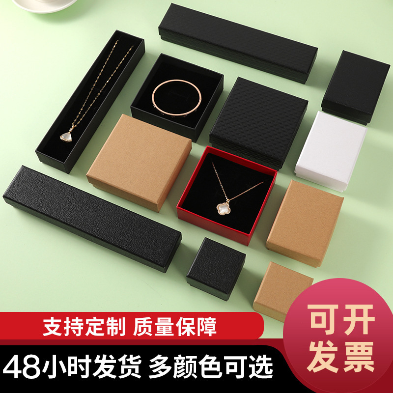 Spot Jewelry Box Kraft Paper Heaven and Earth Cover Black Packaging Paper Box Ring Earrings Necklace Packaging Box Jewelry Box