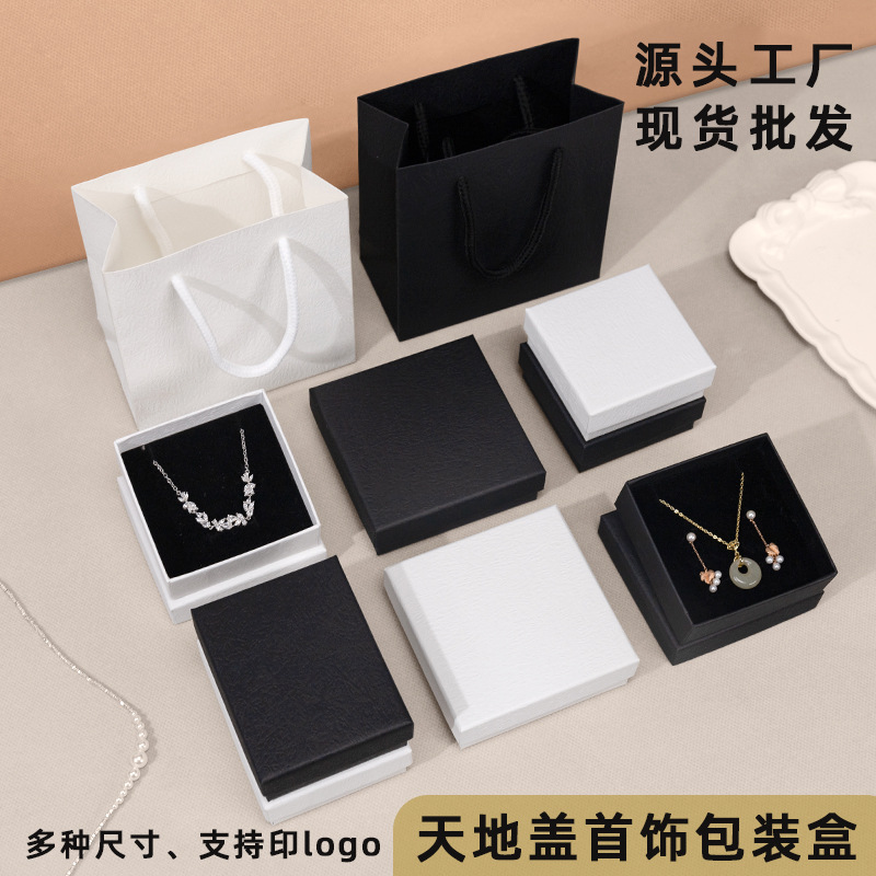 Manufacturer's Heaven and Earth Cover Jewelry Box Black and White Simple Jewelry Box Necklace Ring Bracelet Pendant Packaging Box Exquisite Small Box