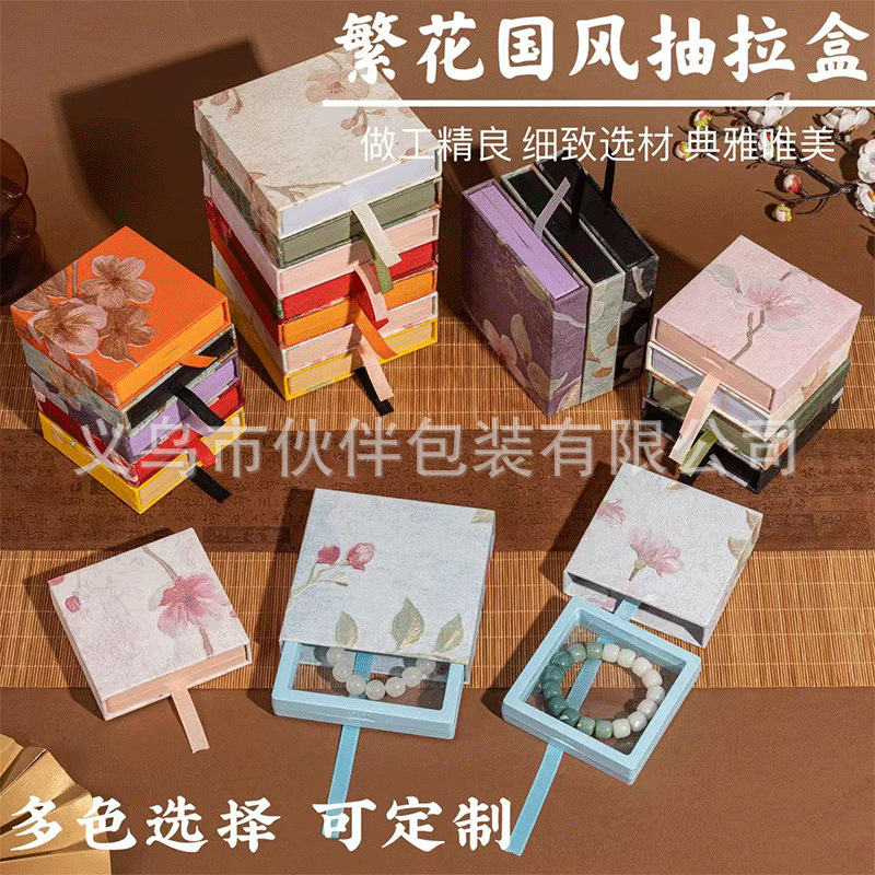 2025 New Embossed Blessing Pull-out Box Bracelet Box Packaging Box Anti-oxidation Suspension Jewelry Box Temple