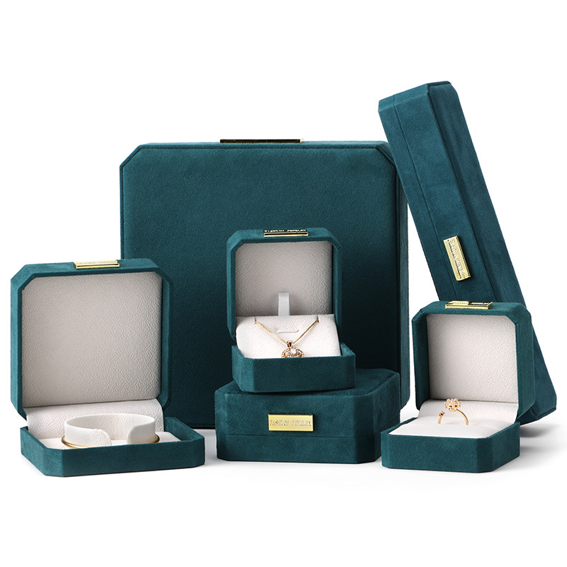 Cross-Border Octagonal Jewelry Box, High-End Green Velvet Ring Bracelet, Jewelry Packaging Storage Box Wholesale