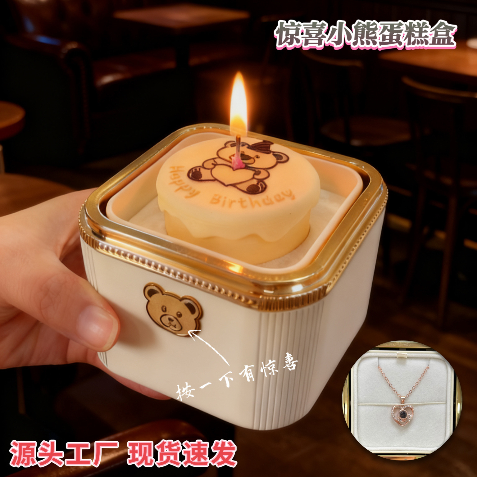 New Product Surprise Flip Bear Cake Jewelry Box Rose Gift Box Happy Birthday Ring Box Manufacturer Ready Stock