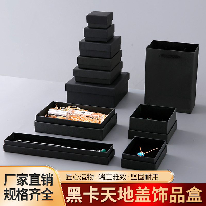 Manufacturer Wholesale Jewelry Box Black Card Cowhide Ring Box Necklace Box Gift Box Bracelet Velvet Heaven and Earth Cover Jewelry Box