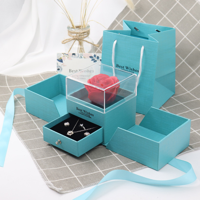 Spot gift box double door Eternal Rose gift box jewelry packaging box ring earrings necklace jewelry box