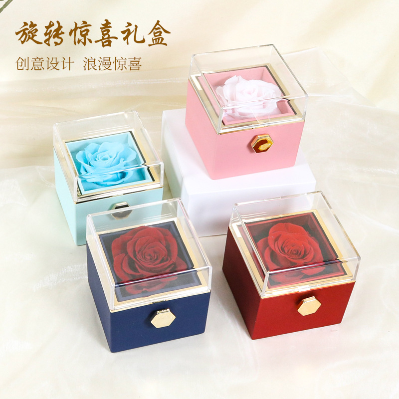 Rotating Eternal Flower Jewelry Box Packaging Box High-level Romantic Expression Surprise Rose Gift Box Jewelry Packaging Box