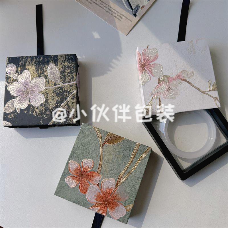Chinese Style Flower and Brocade Jewelry Box Necklace Ring Hairpin Heaven and Earth Cover Gift Box Chinese Style Jewelry Exquisite Storage Box