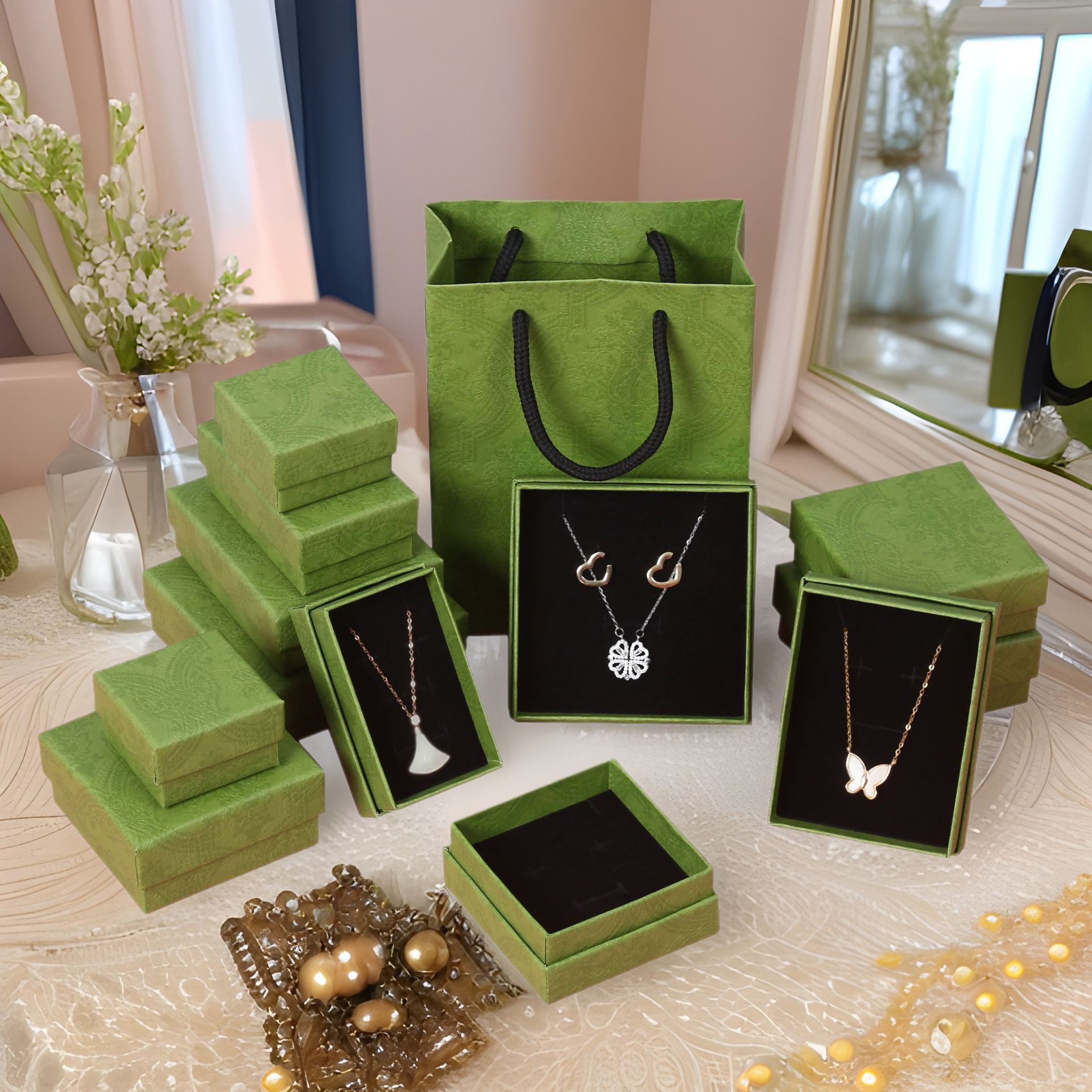 European and American Fashion Jewelry Packaging Box Ring Bracelet Jewelry Box Tb Gift Box Storage Necklace Dust Bag Universal Set
