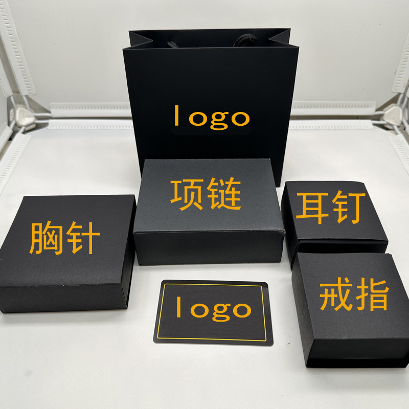Factory wholesale Kraft paper jewelry box drawer jewelry packaging box earrings necklace ring box Black logo printing